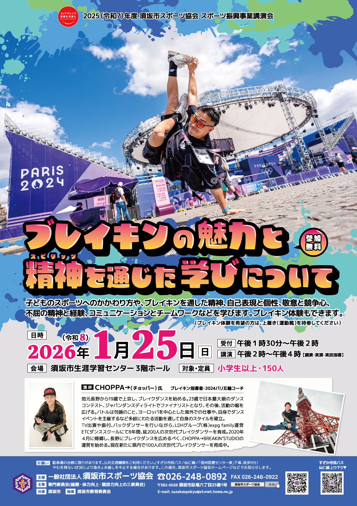 スポーツ振興事業講演会のお知らせ ~フェアプレイで須坂を元気に~